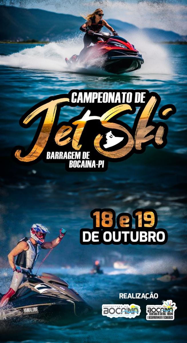 A Prefeitura de Bocaina anunciou a realização de um grande evento esportivo e turístico: o Campeonato de Jetski, que acontecerá nos dias 18 e 19 de outubro de 2025, na Barragem de Bocaina. A programação promete atrair competidores, visitantes e famílias de toda a região e de estados vizinhos, movimentando a economia local e promovendo o turismo sustentável.